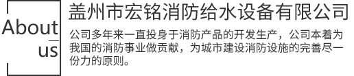 蓋州市宏銘消防給水設(shè)備有限公司坐落于風(fēng)景秀麗、氣候宜人、交通便利的遼寧省蓋州市境內(nèi),這里交通網(wǎng)絡(luò)四通八達(dá),哈大鐵路、哈大公路、沈大高速公路近在咫尺,營(yíng)口港、鲅魚(yú)圈港與公司相鄰。